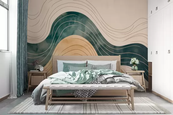Wall Mural Photo Wallpaper Abstract wavy lines in natural sand and emerald tones Nr. w09732