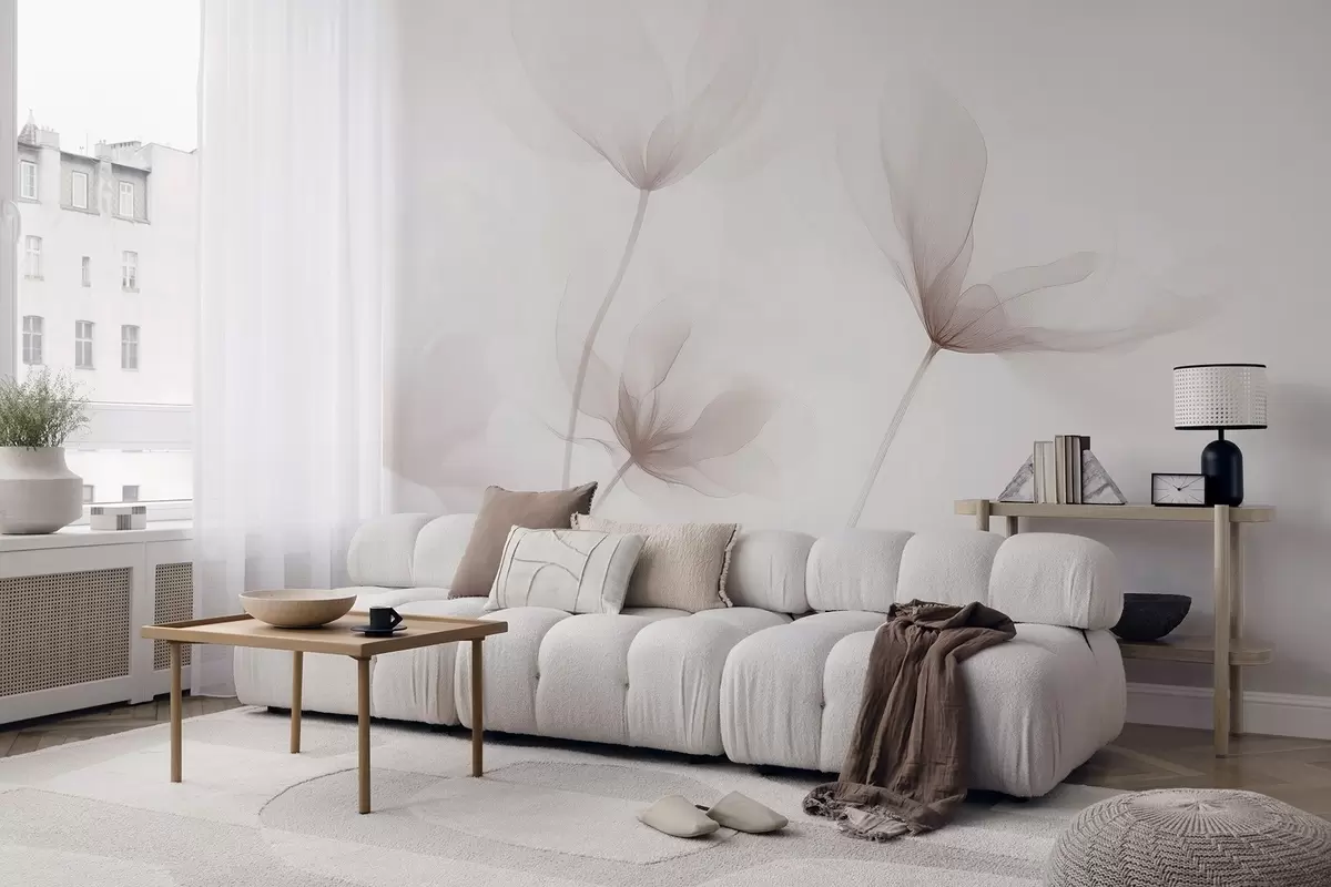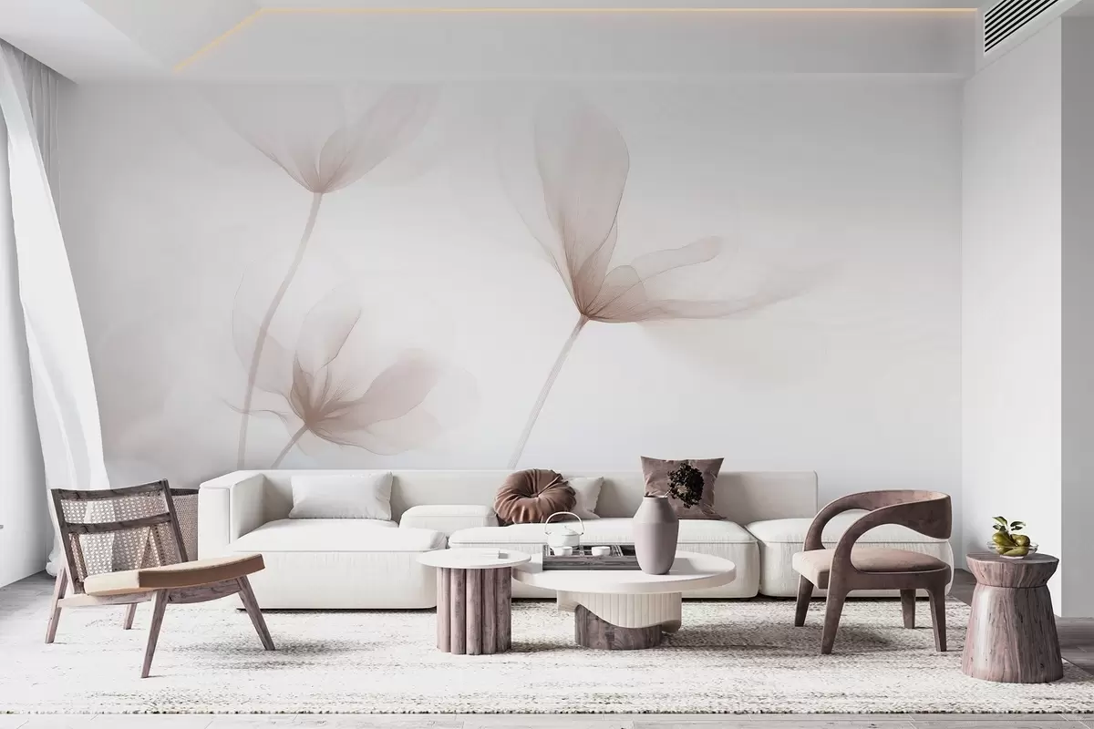 Wall Mural Photo Wallpaper Airy beige flowers in minimalist light style Nr. w09734