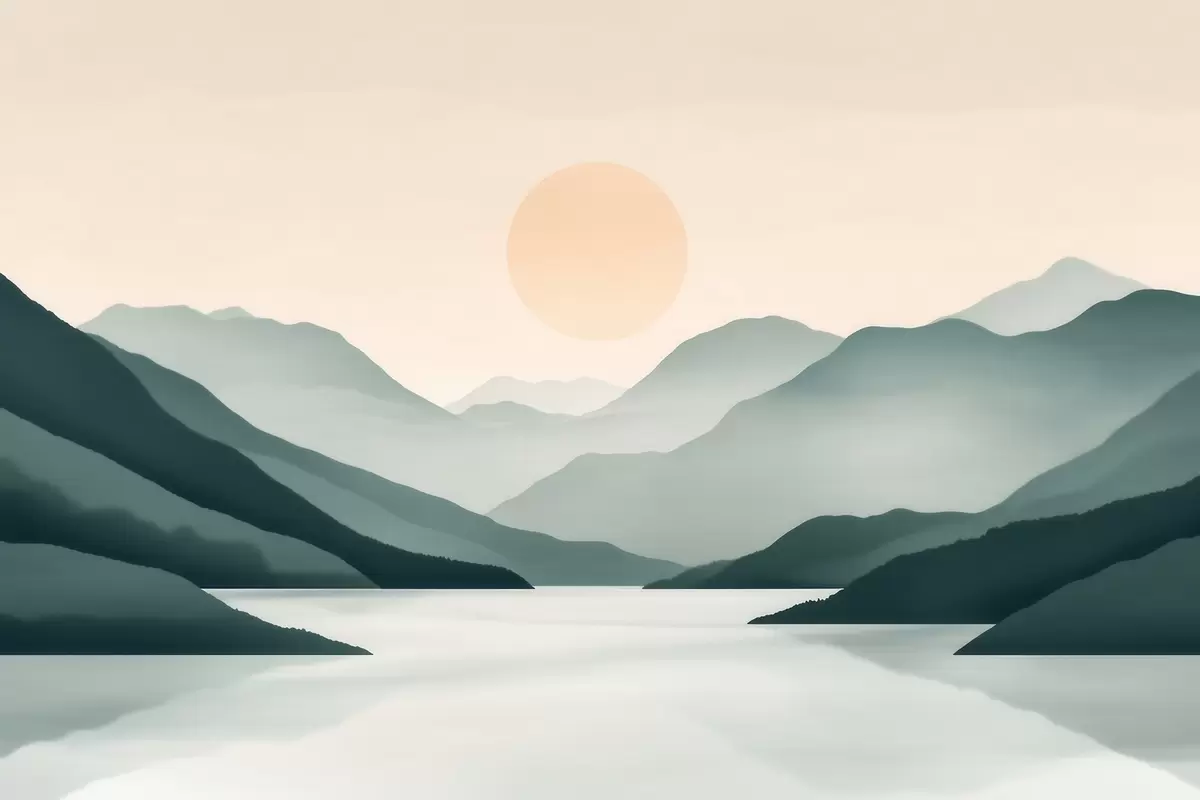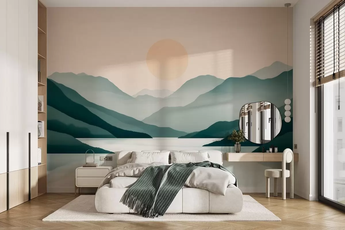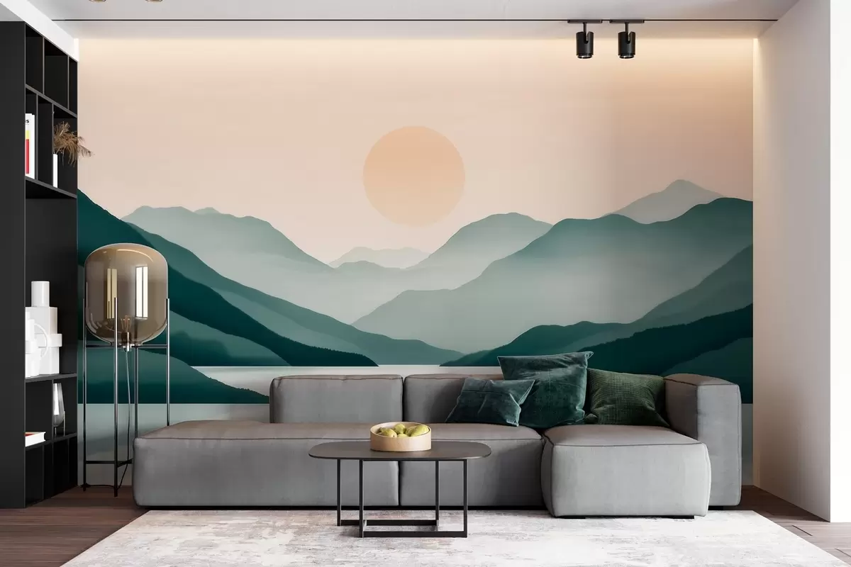 Wall Mural Photo Wallpaper Quiet mountain landscape with the sun over the lake Nr. w09735