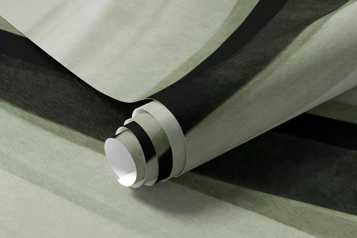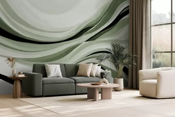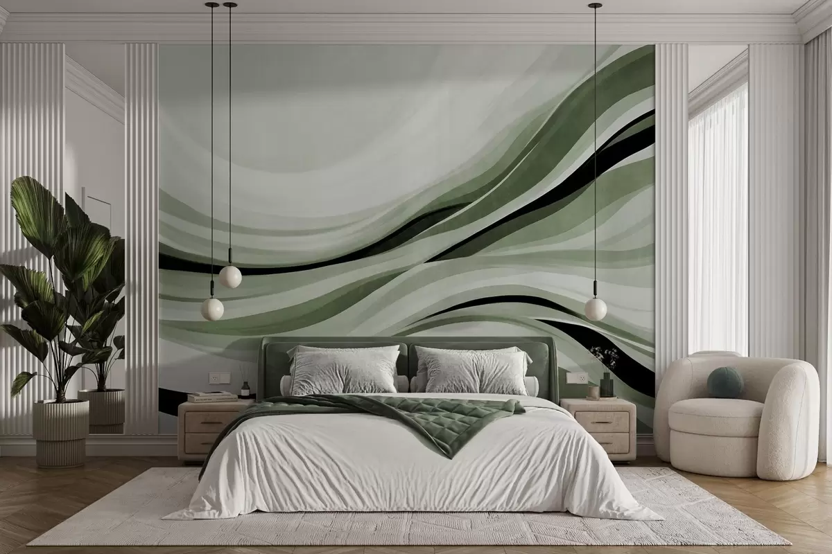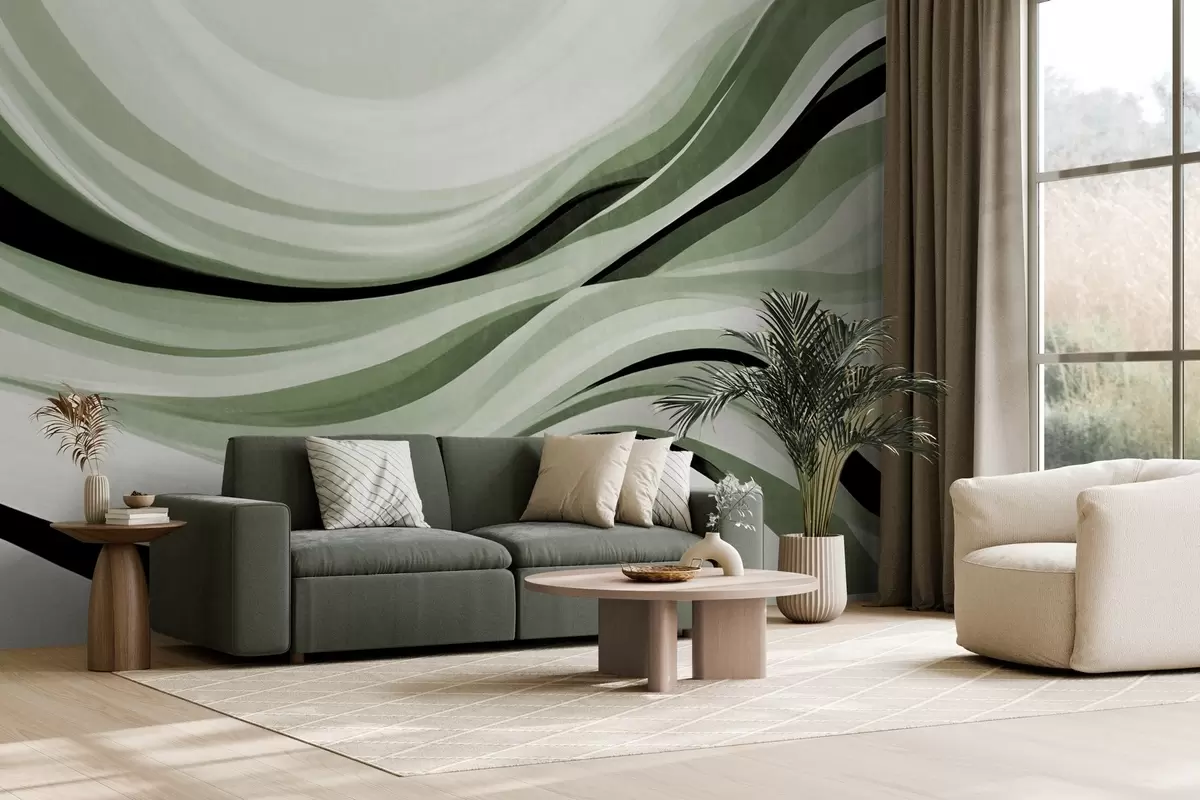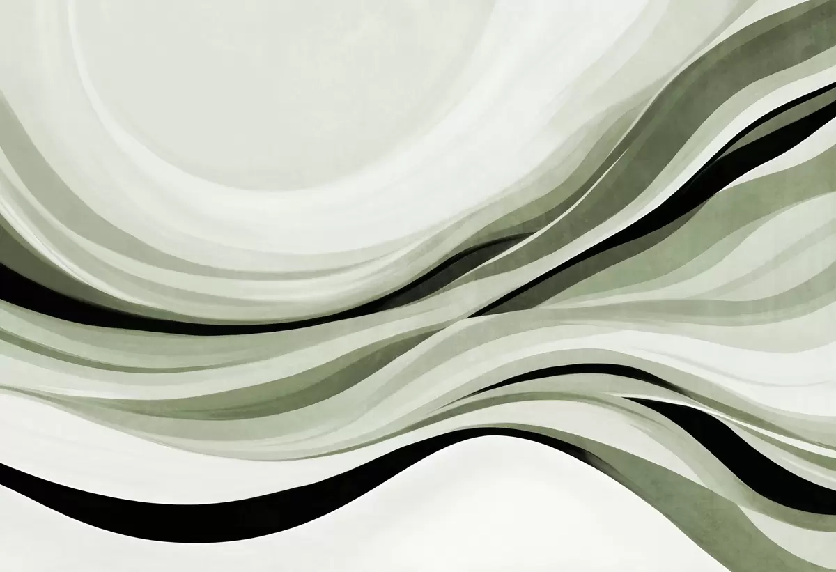 Wall Mural Photo Wallpaper Abstract wavy lines in shades of green and black against a light background, textured art Nr. w09748v1