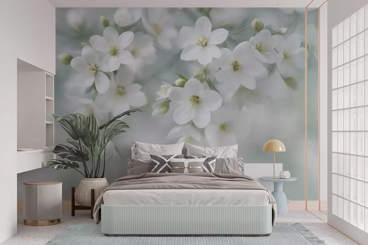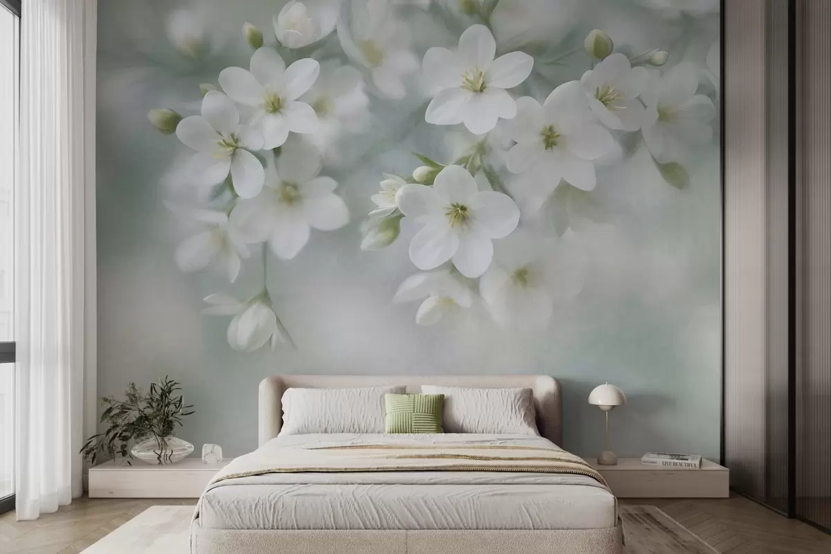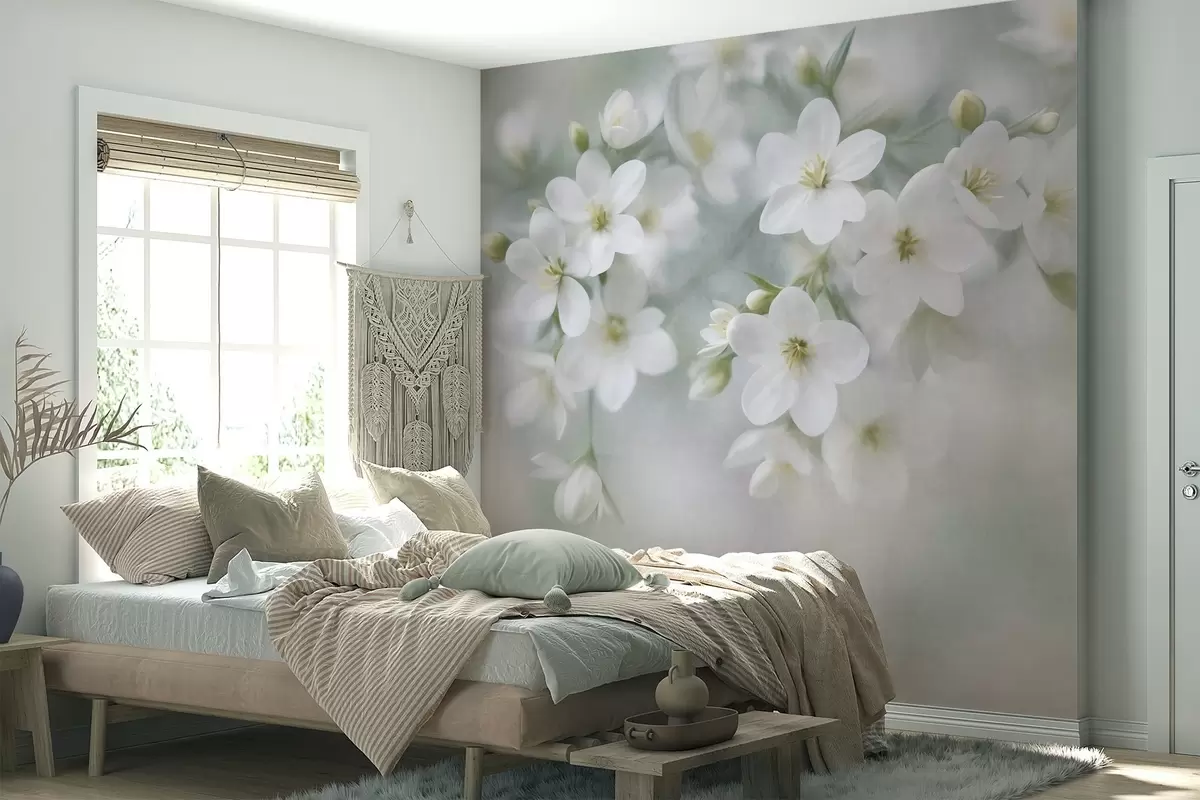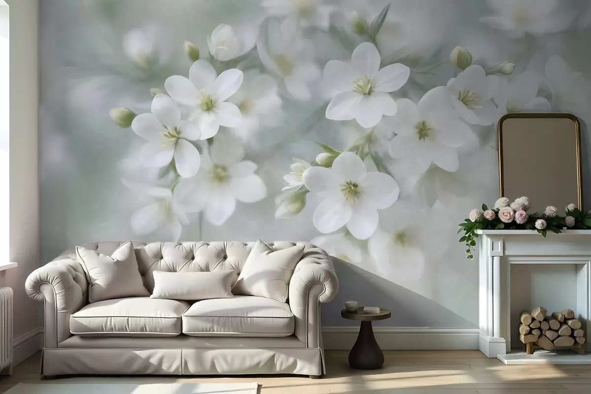 Wall Mural Photo Wallpaper Delicate textured white flowers softly blurred in the background Nr. w09759