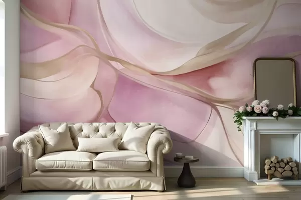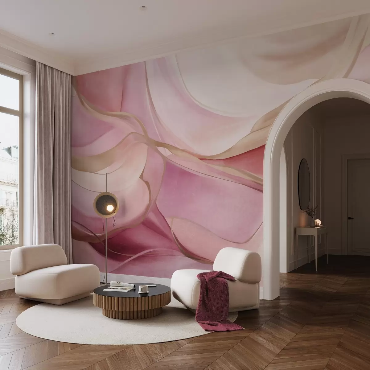 Wall Mural Photo Wallpaper Abstract textured flowing shapes in shades of pink and beige with delicate yellow lines Nr. w09818