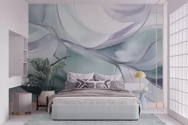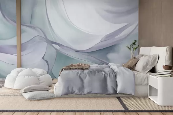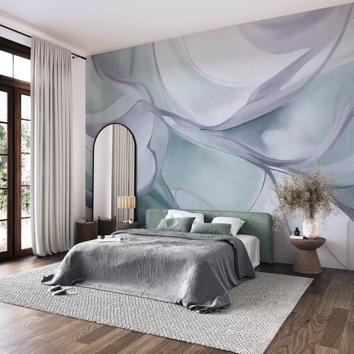 Wall Mural Photo Wallpaper Abstract textured flowing shapes in shades of blue and gray with delicate lines Nr. w09818v1