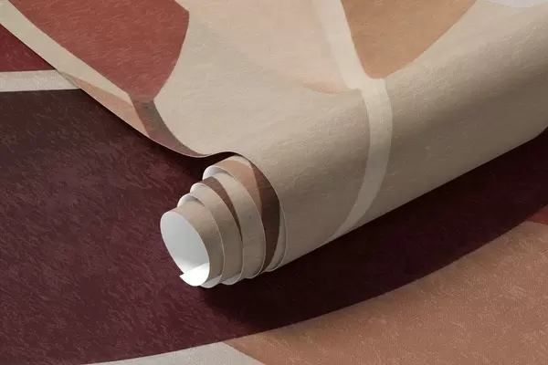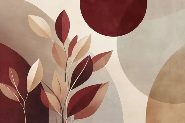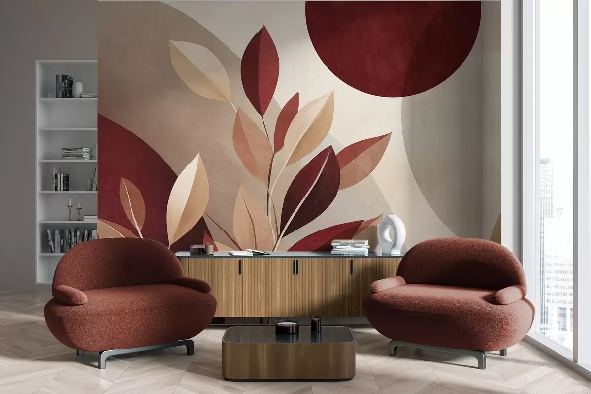 Wall Mural Photo Wallpaper Textured bordo and beige leaves on a background of abstract shapes, minimalism, modern art Nr. w09829