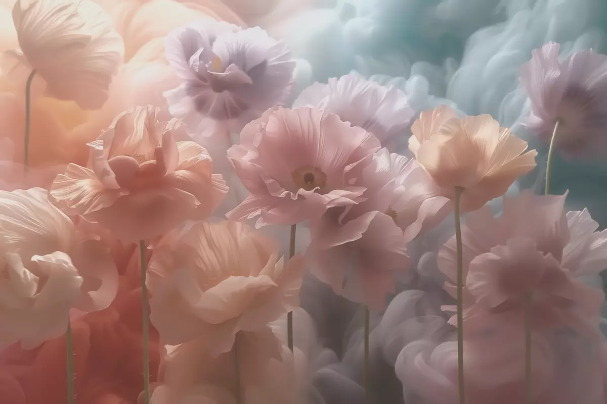 Wall Mural Photo Wallpaper Airy flowers with translucent petals in soft morning light Nr. w09847