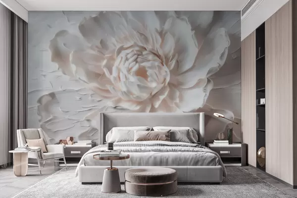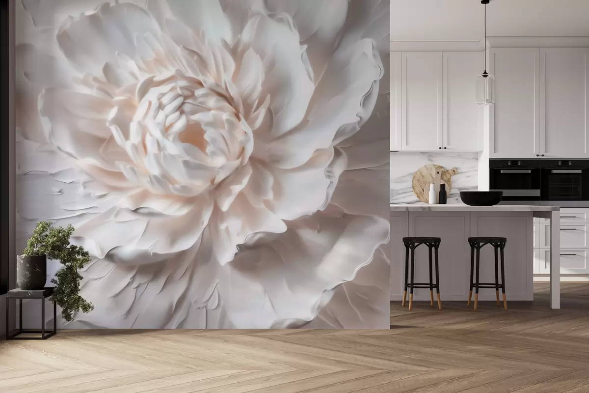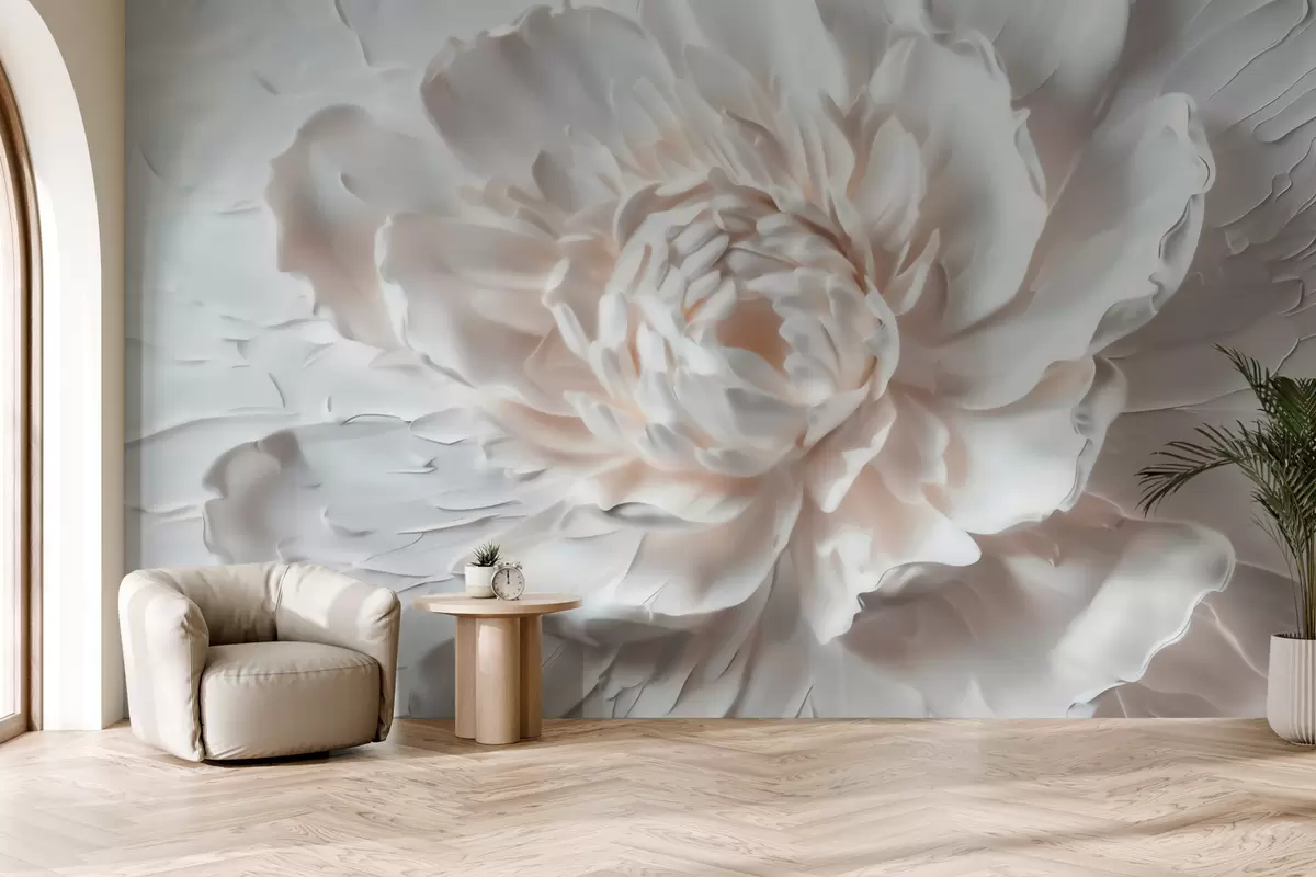 Wall Mural Photo Wallpaper A delicate bas-relief flower with smooth petals in light tones Nr. w09861