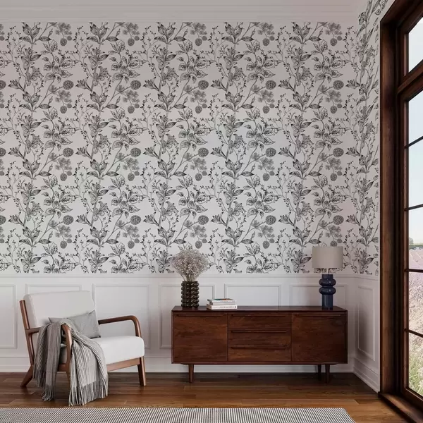 Wallpaper Black and white branches with leaves on white background a00098v1