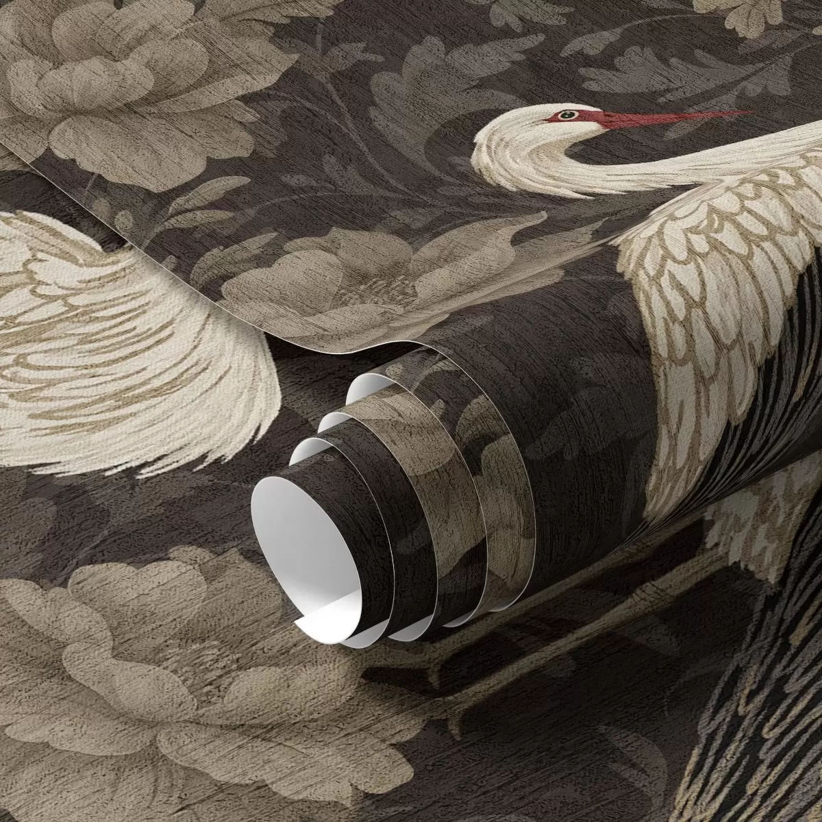 Wallpapers Cranes among large flowers in a classic pastel palette Nr. a00108