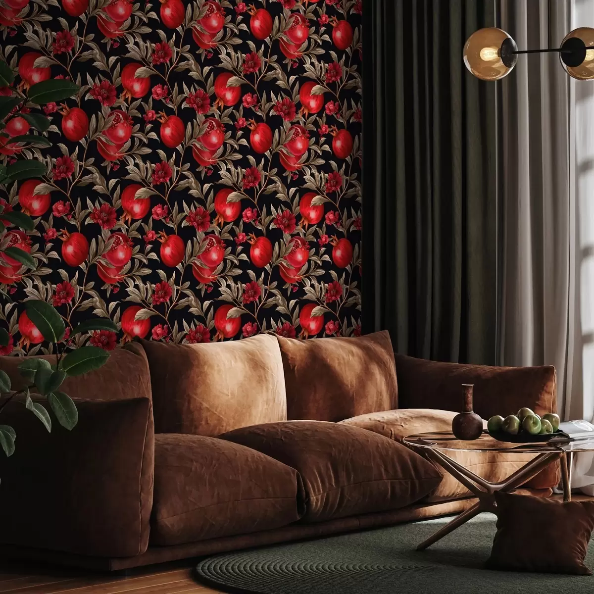 Wallpapers Pomegranates and flowers on a dark background in Mediterranean style Nr. a00115