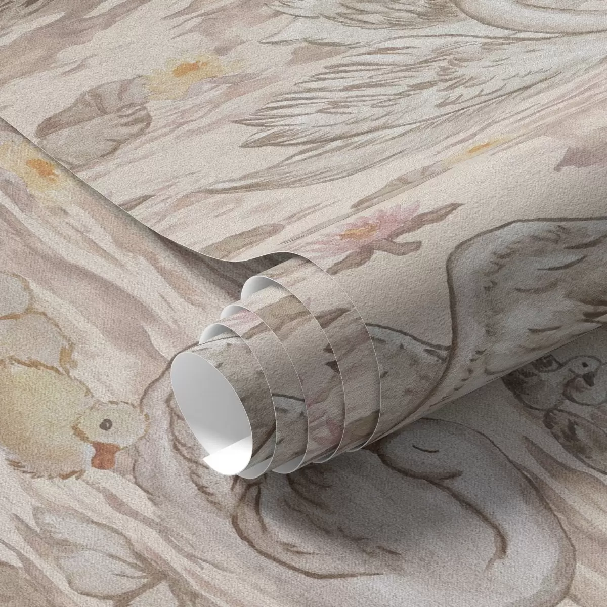 Wallpapers Swans with chicks on pink background with water lilies Nr. a00176