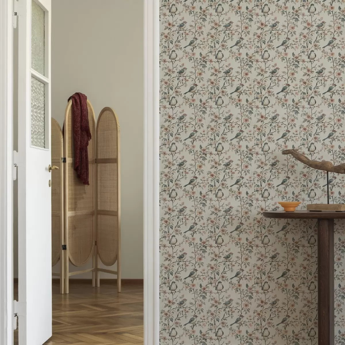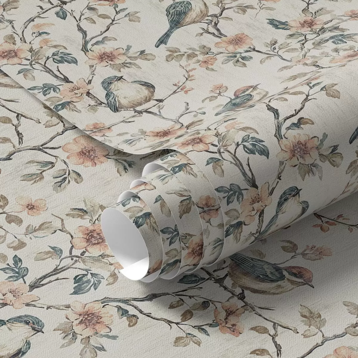 Wallpapers Birds on branches with flowers in retro watercolor style Nr. a00197