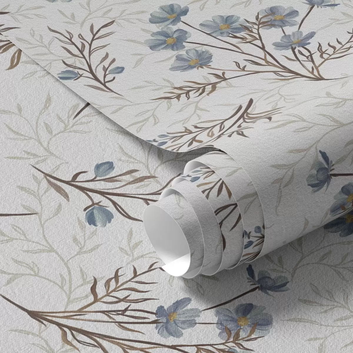Wallpapers Blue flowers and light branches on a white background Nr. a00265v1
