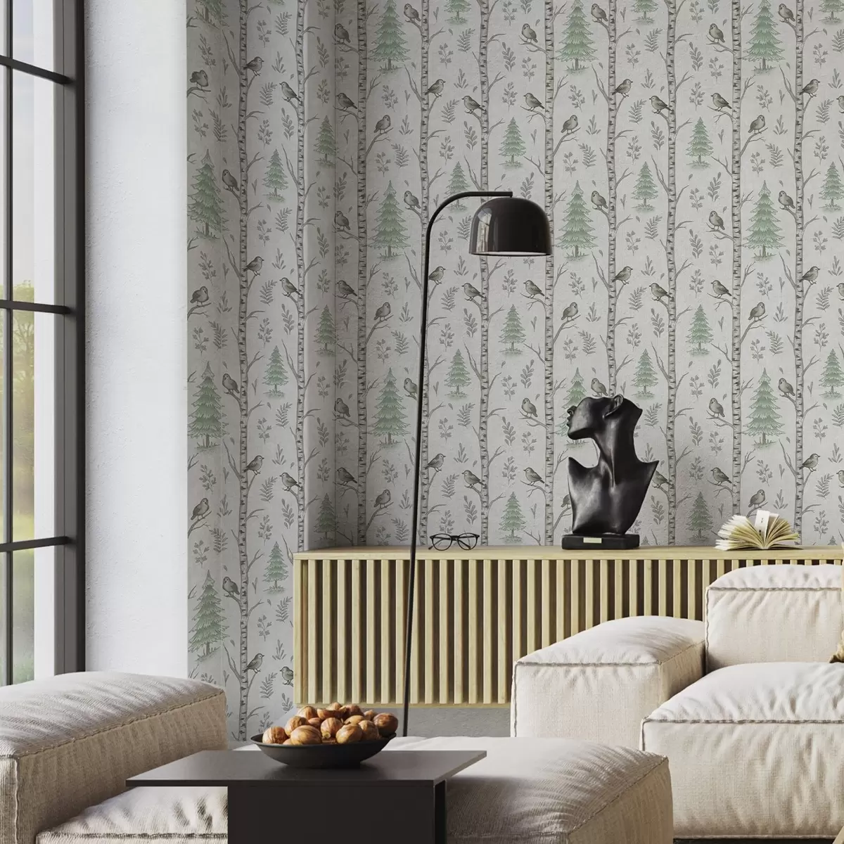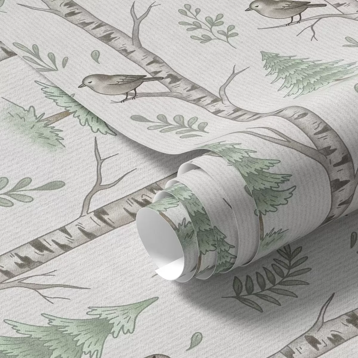 Wallpapers Birches with birds in a light green forest Nr. a00316