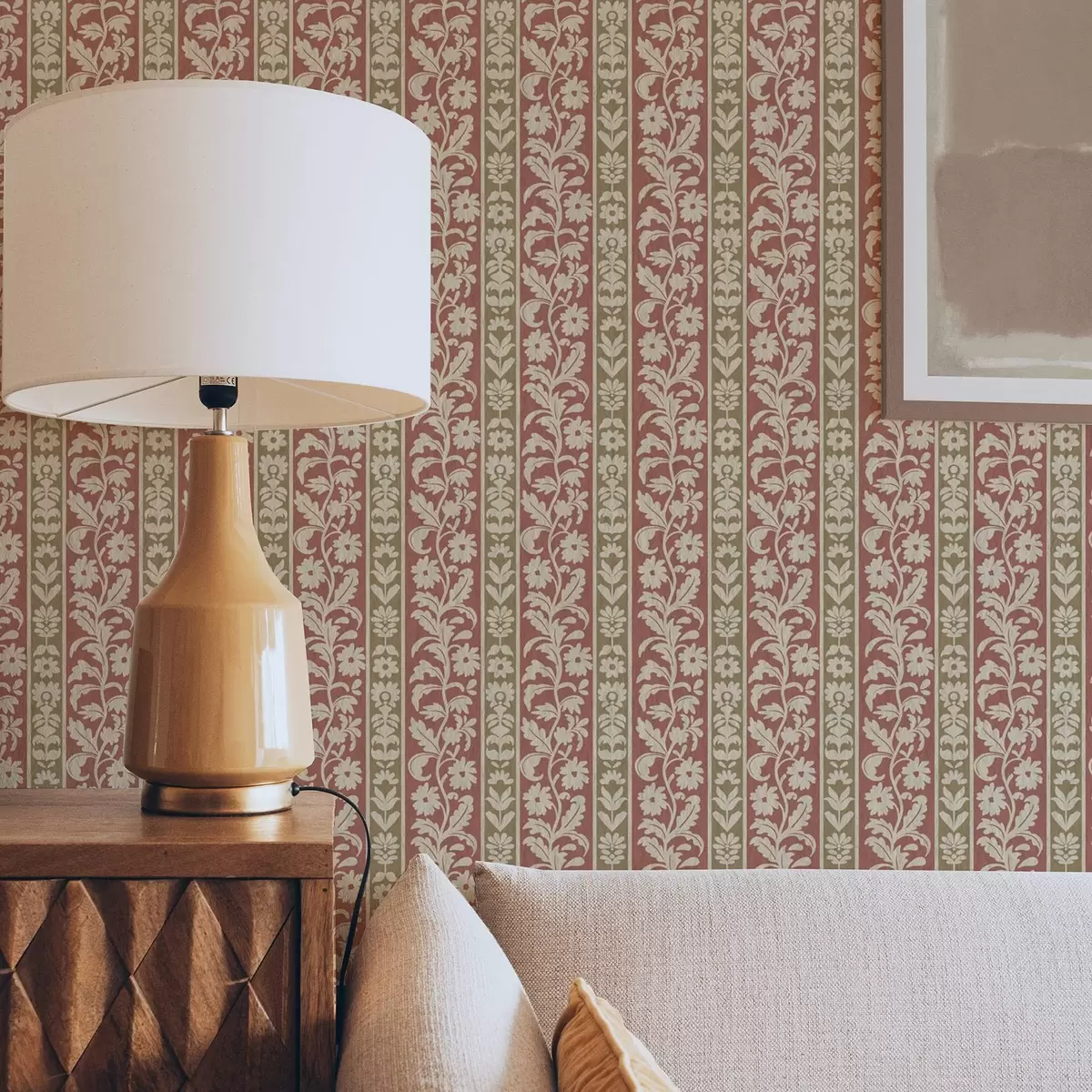 Wallpapers Retro vertical stripes with floral pattern Nr. a00362