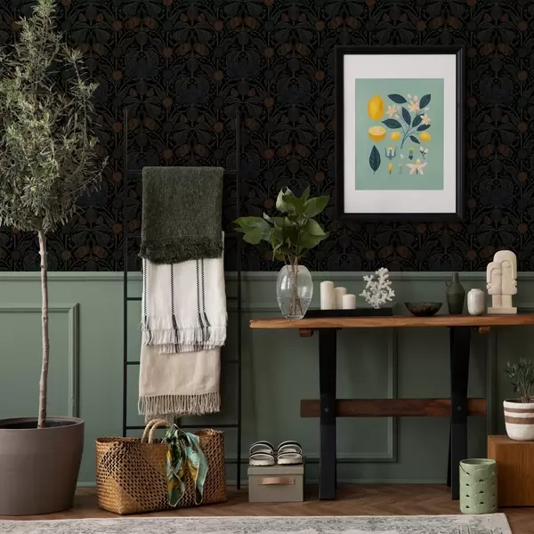 Wallpapers Dark floral ornament with orange accents Nr. a00411