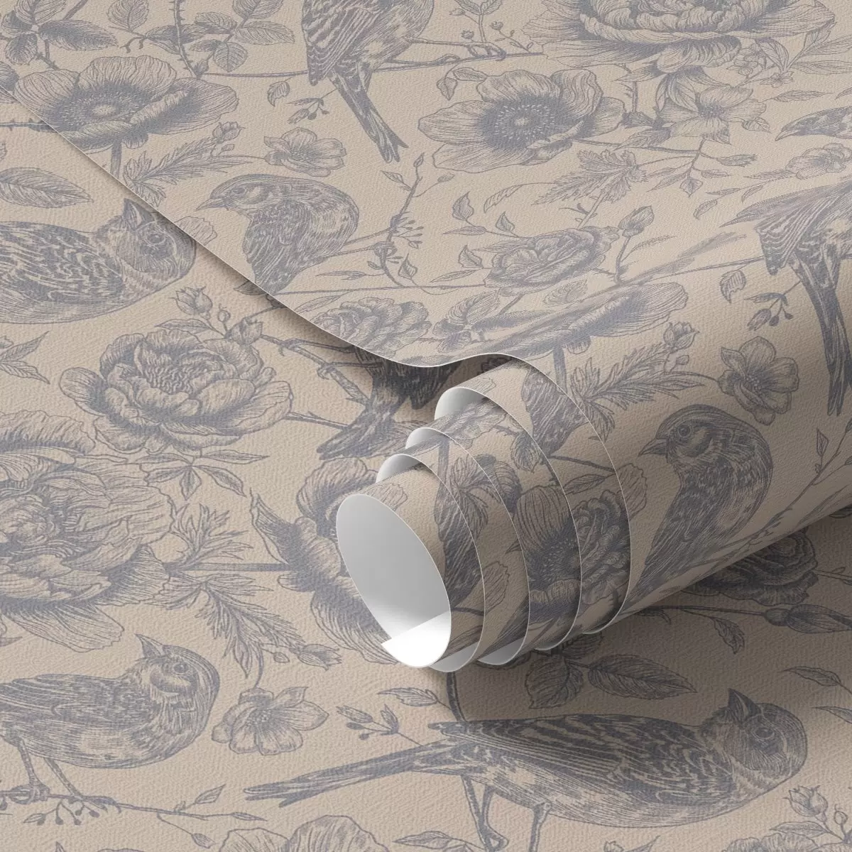 Wallpapers Vintage birds and flowers on a soft beige background Nr. a00423