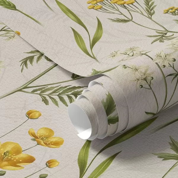Wallpapers Yellow flowers and greenery on a beige background Nr. a00472v2