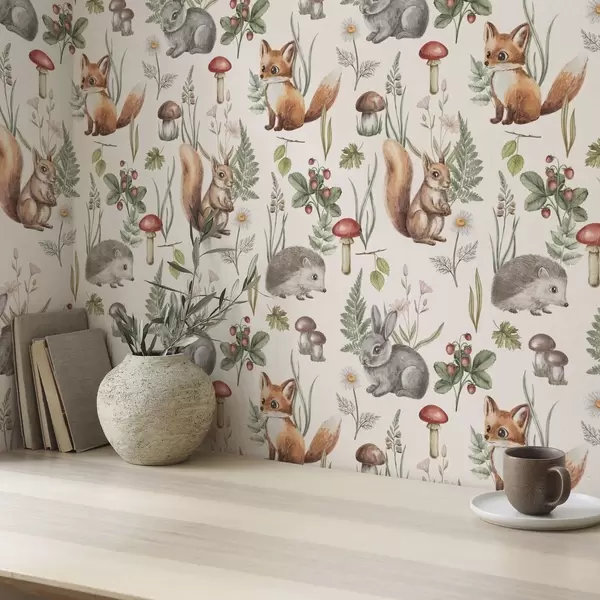 Wallpapers Forest animals, mushrooms, and plants in a fairy-tale style Nr. a00477