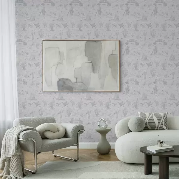 Wallpapers Drawing of herons and water plants in calm gray shades Nr. a00479