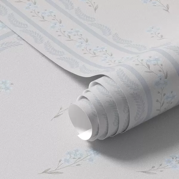 Wallpapers White background with blue flowers and decorative stripe Nr. a00484v1