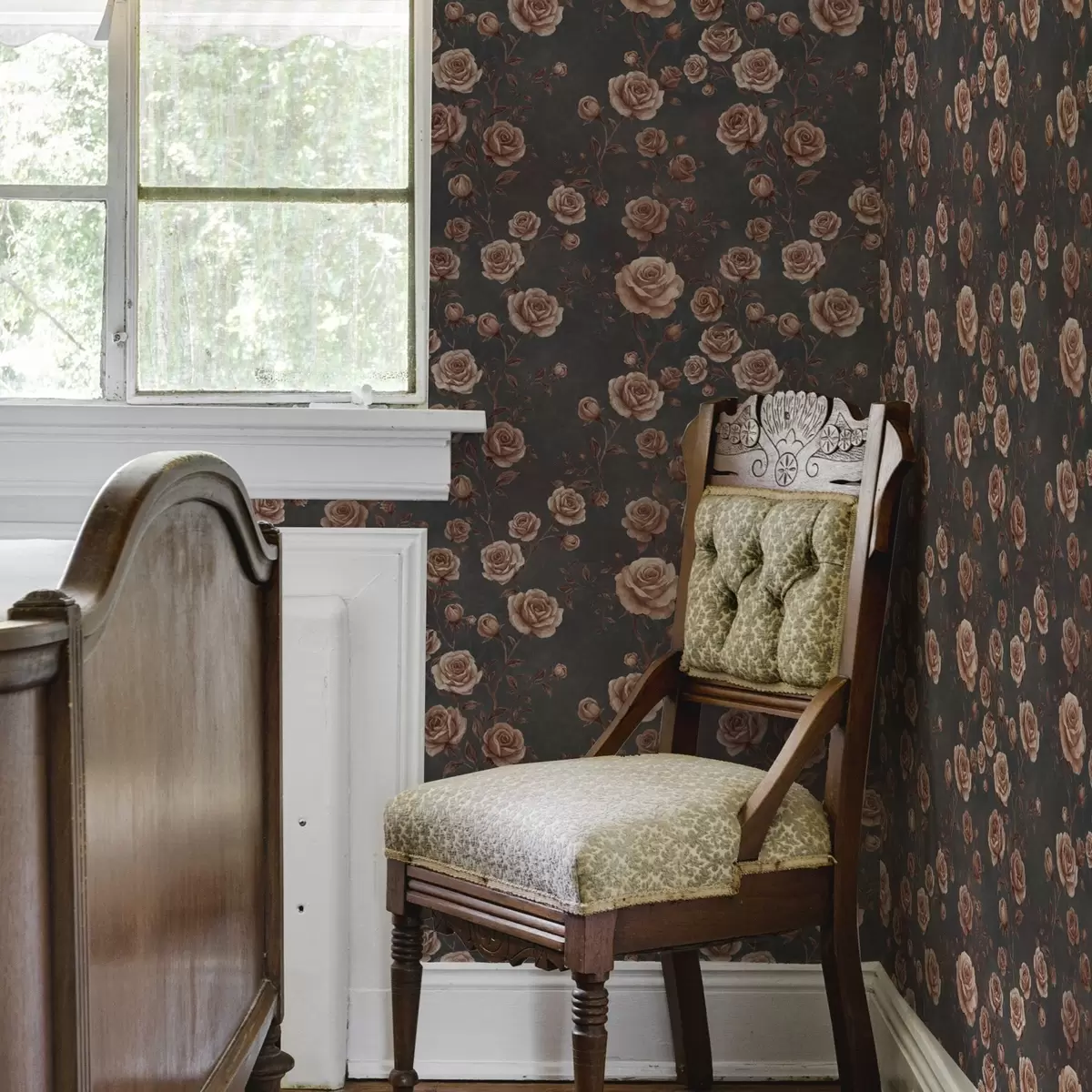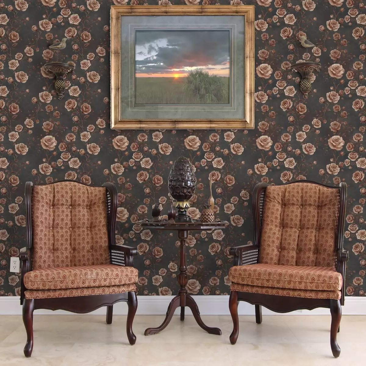 Wallpapers Vintage roses on a graphite background, terracotta palette Nr. a00497v1