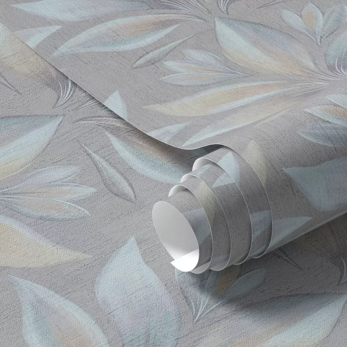 Wallpapers Large stylized leaves in a blue-sand palette on gray Nr. a00601