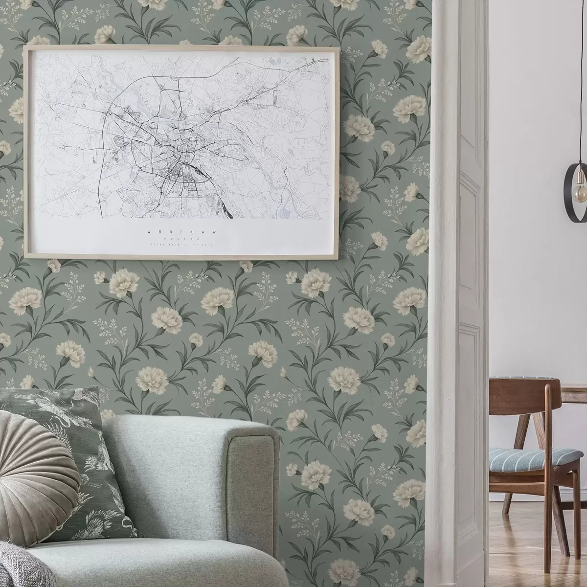 Wallpapers Powdery carnations on a gray-teal background, refined print Nr. a00610