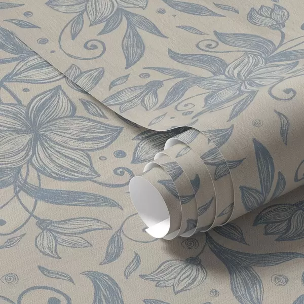 Wallpapers Blue linear floral pattern on warm beige Nr. a00630v2