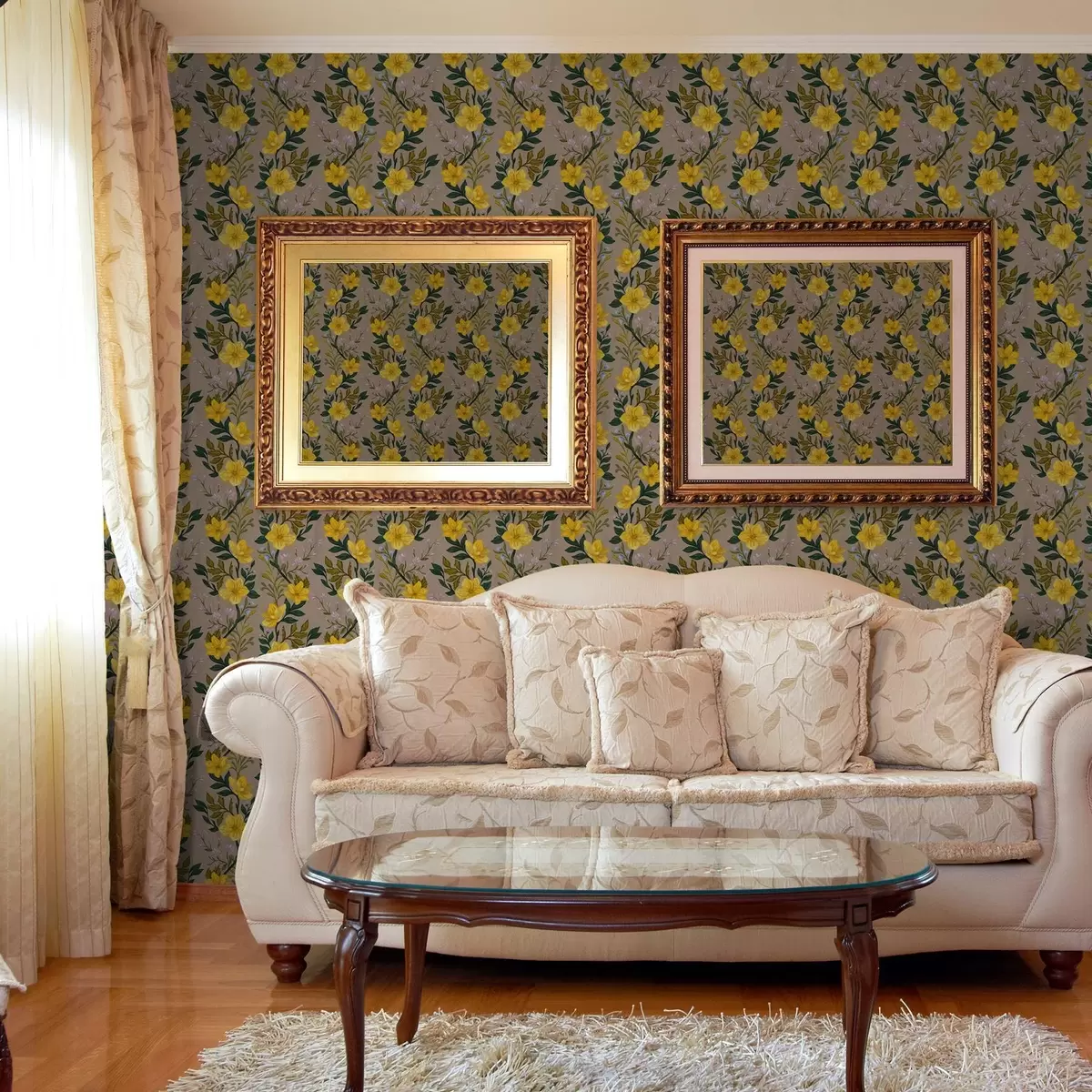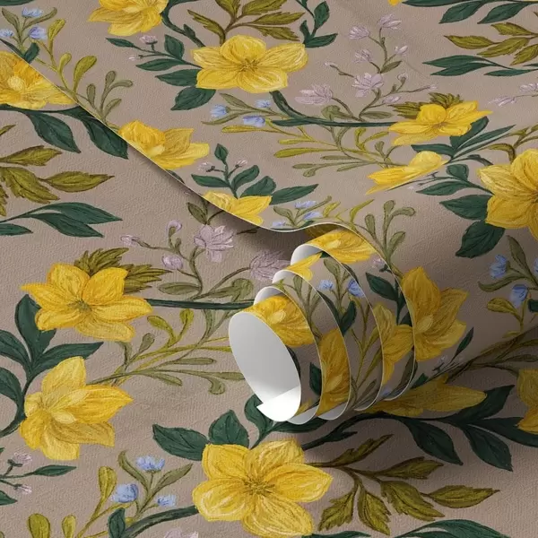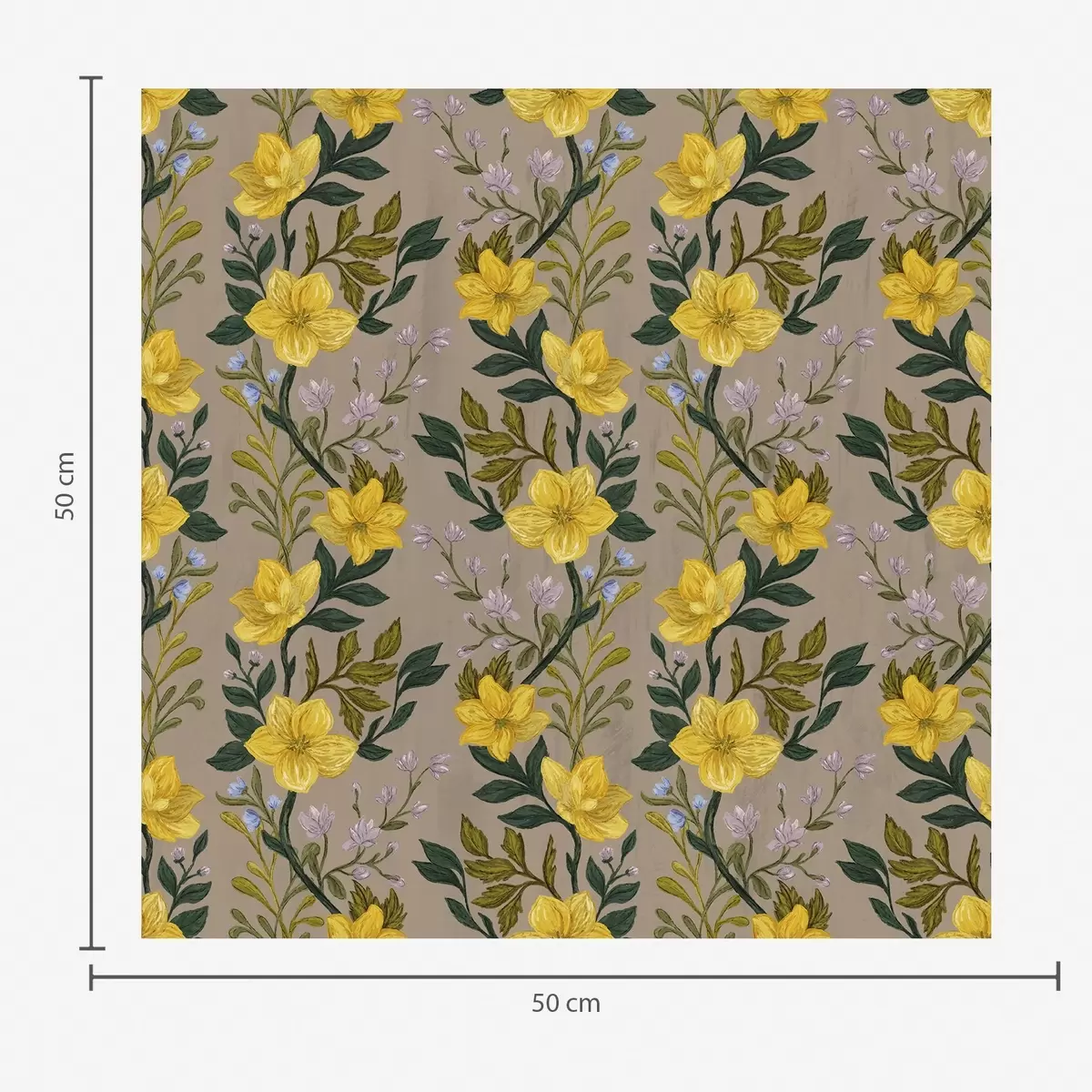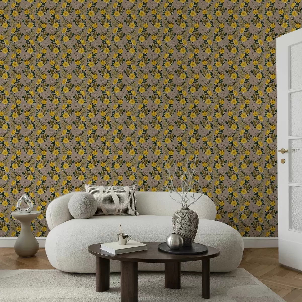 Wallpapers Yellow flowers in vertical garlands on a taupe background Nr. a00632v1