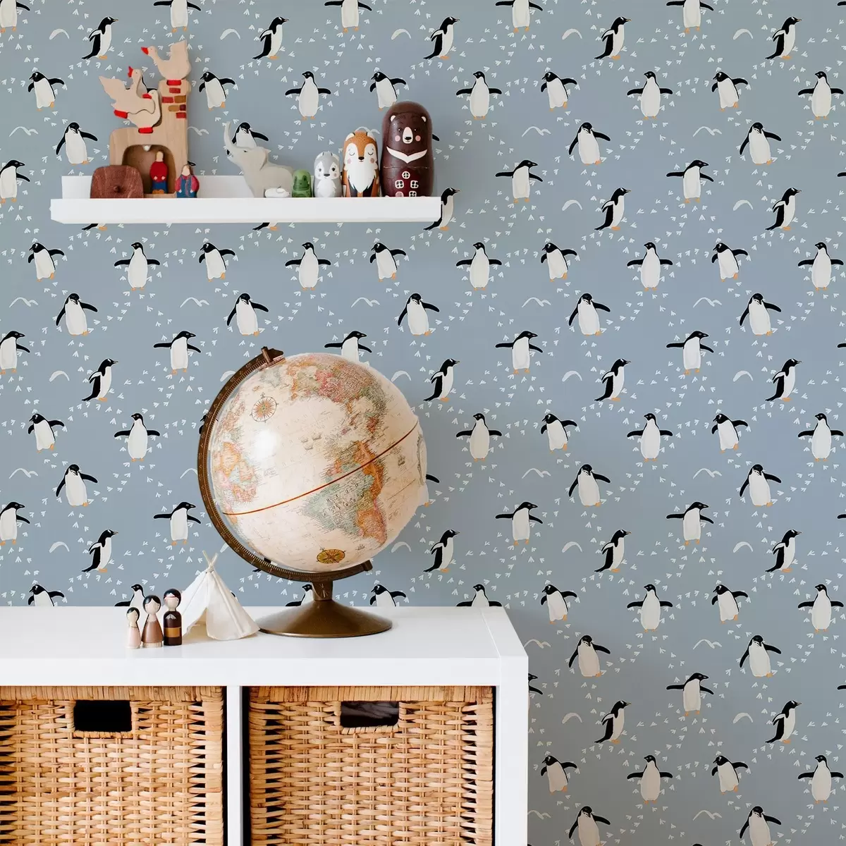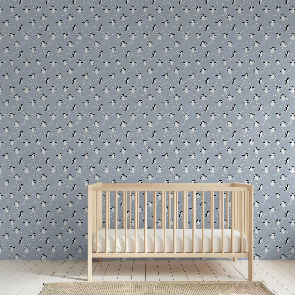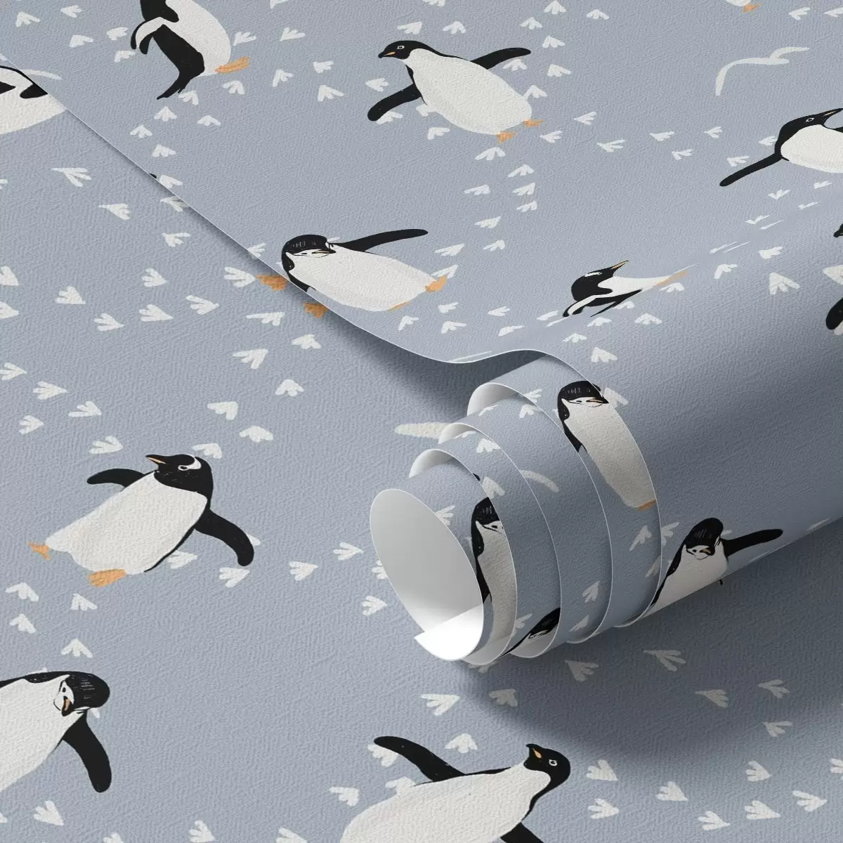 Wallpapers Penguins on gray-blue with footprints Nr. a00655