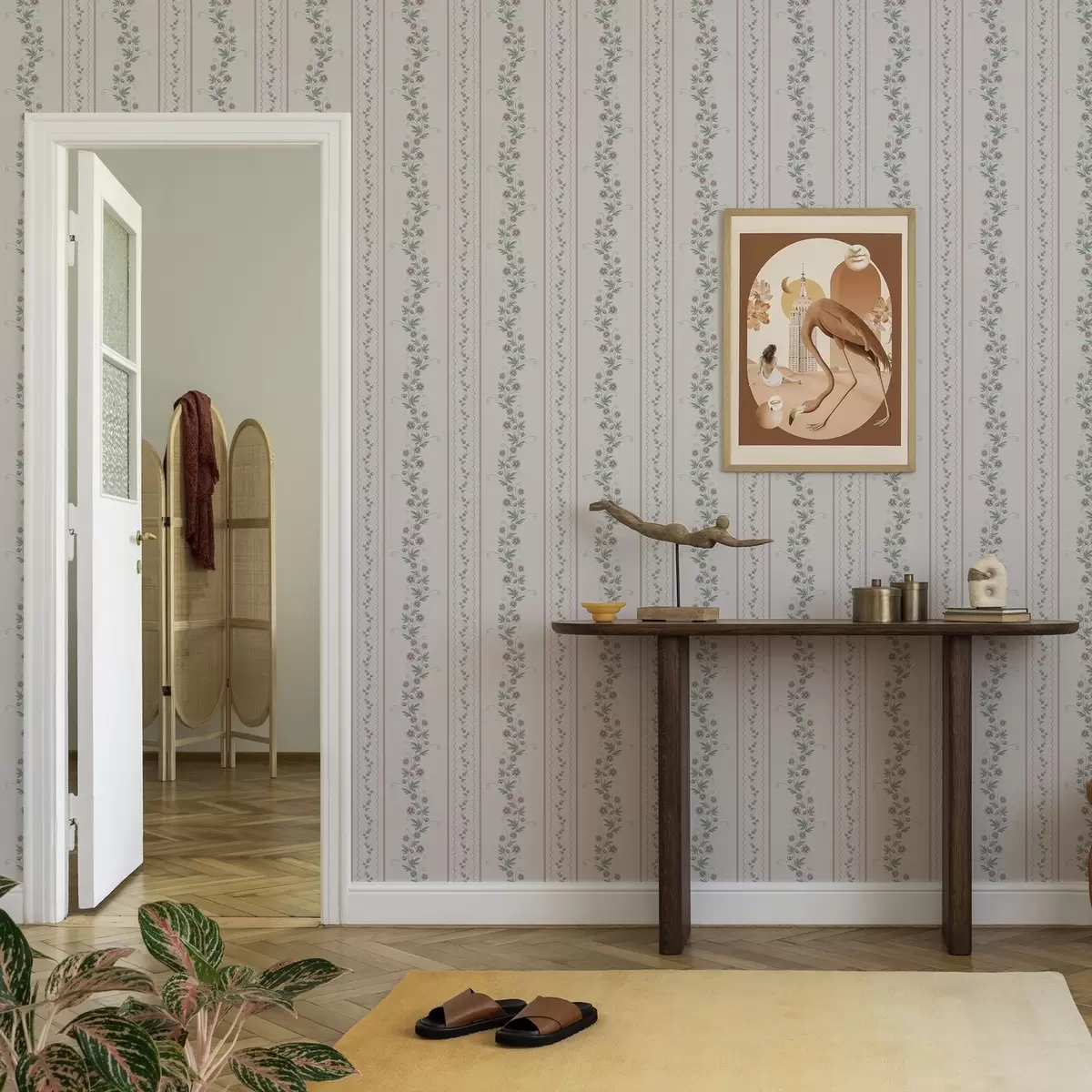 Wallpapers Delicate stripes with lavender flowers, vintage Nr. a00671