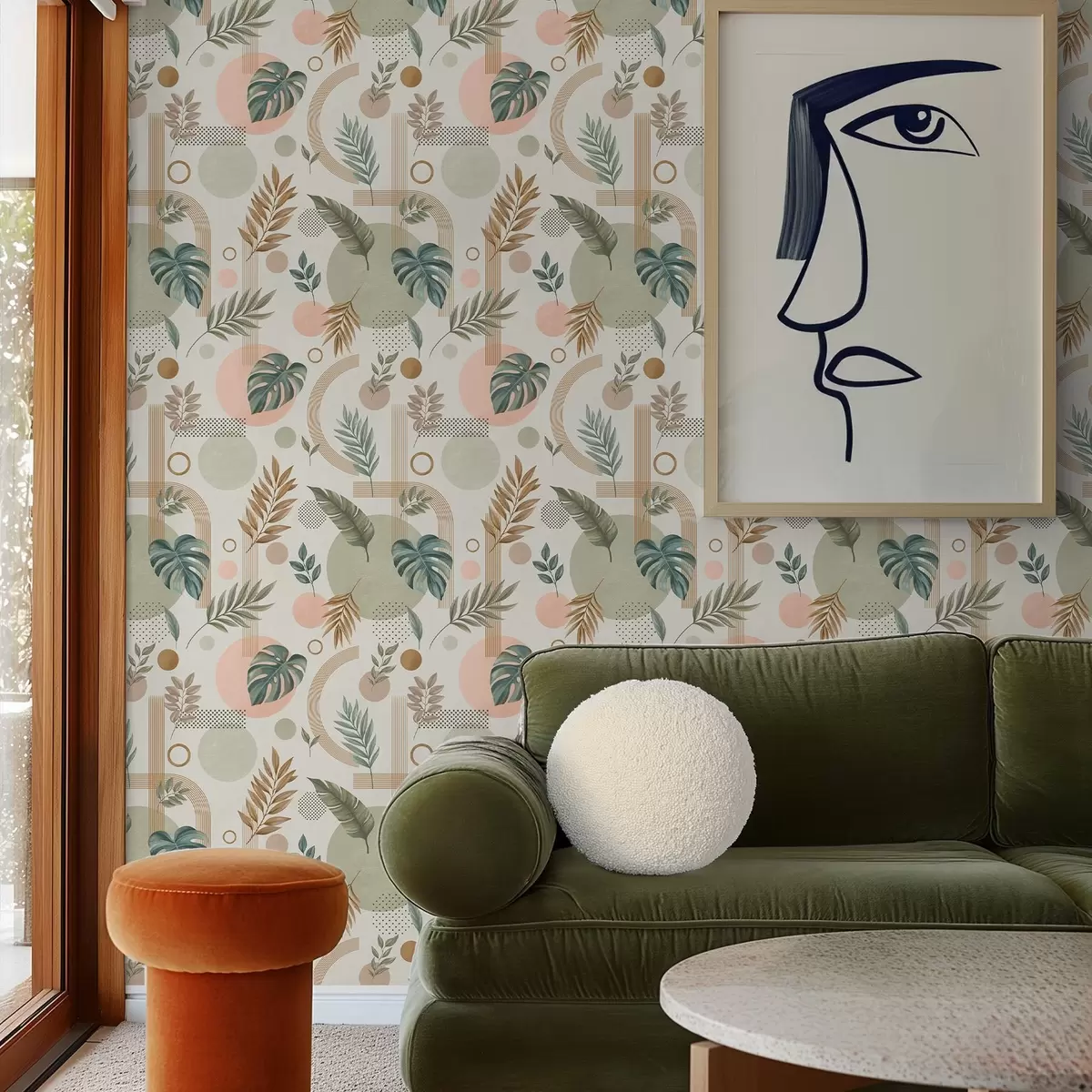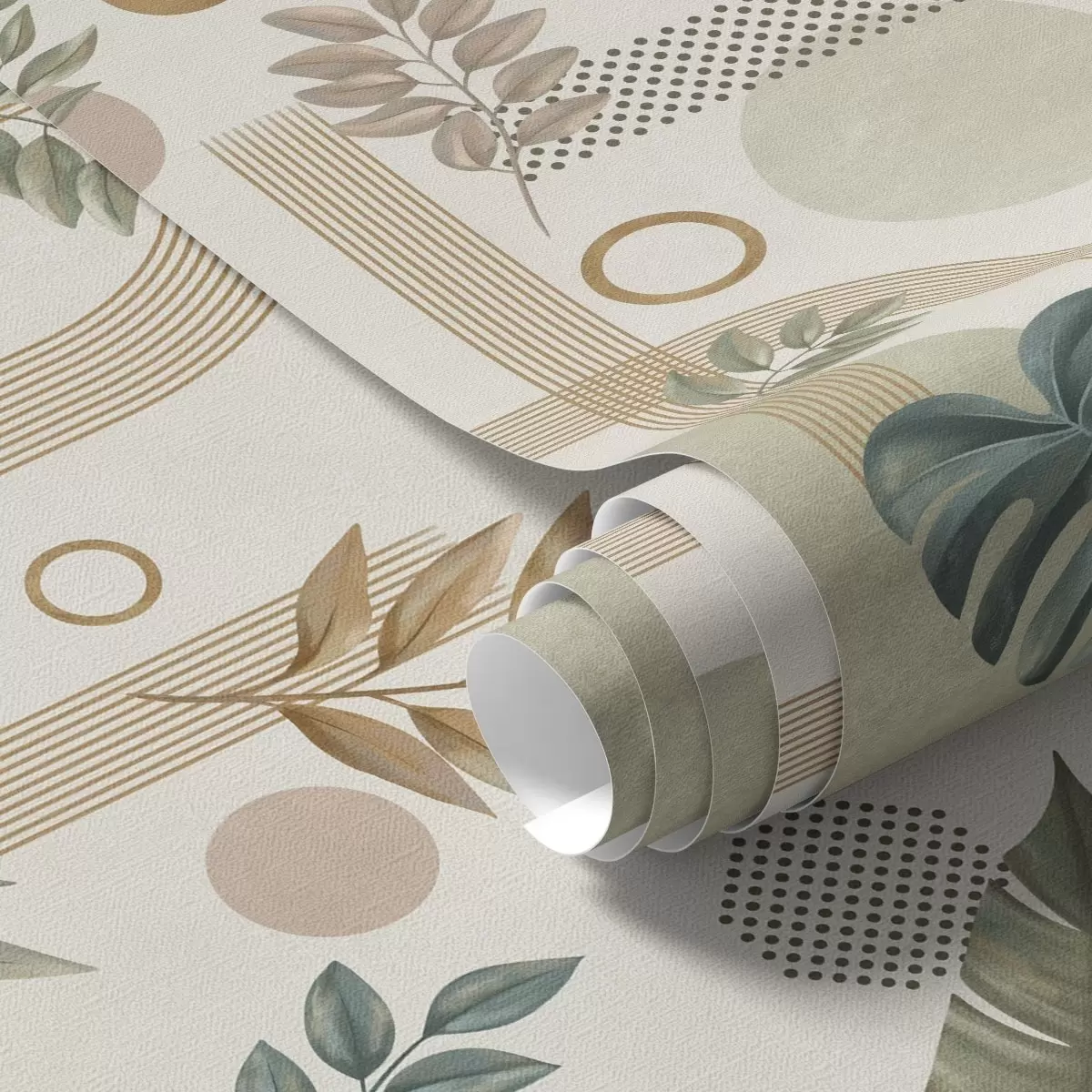 Wallpapers Leaves and geometric shapes in calm warm shades Nr. a00677