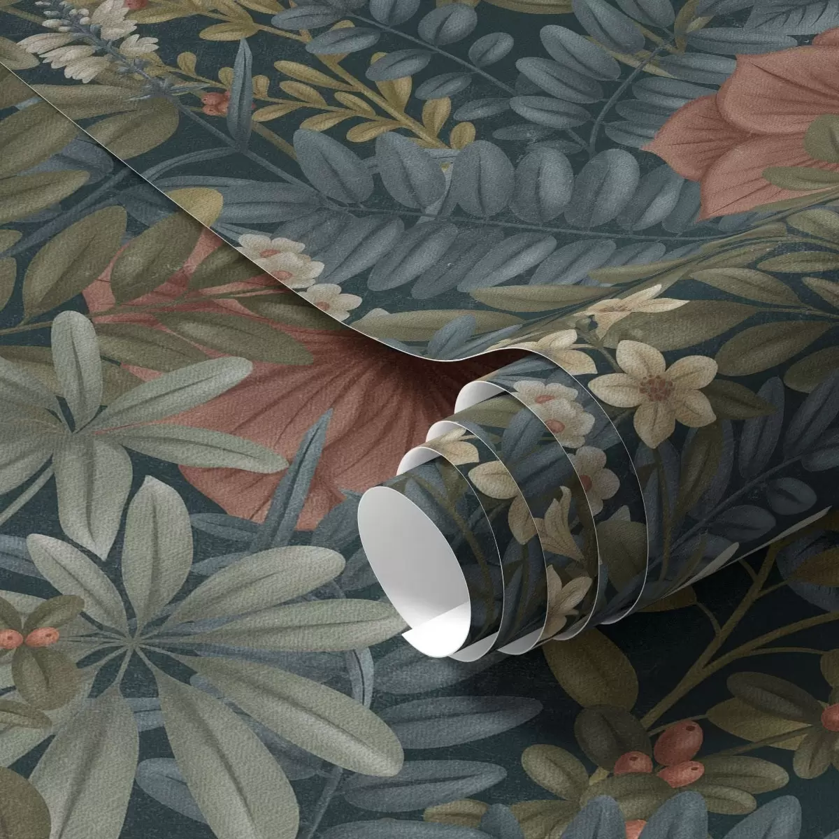 Wallpapers Dark background with dense flowers and leaves in warm tones Nr. a00678