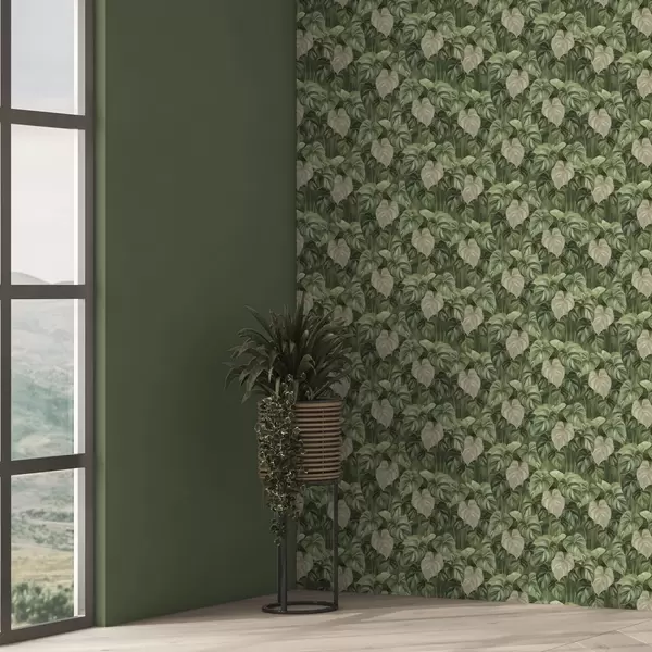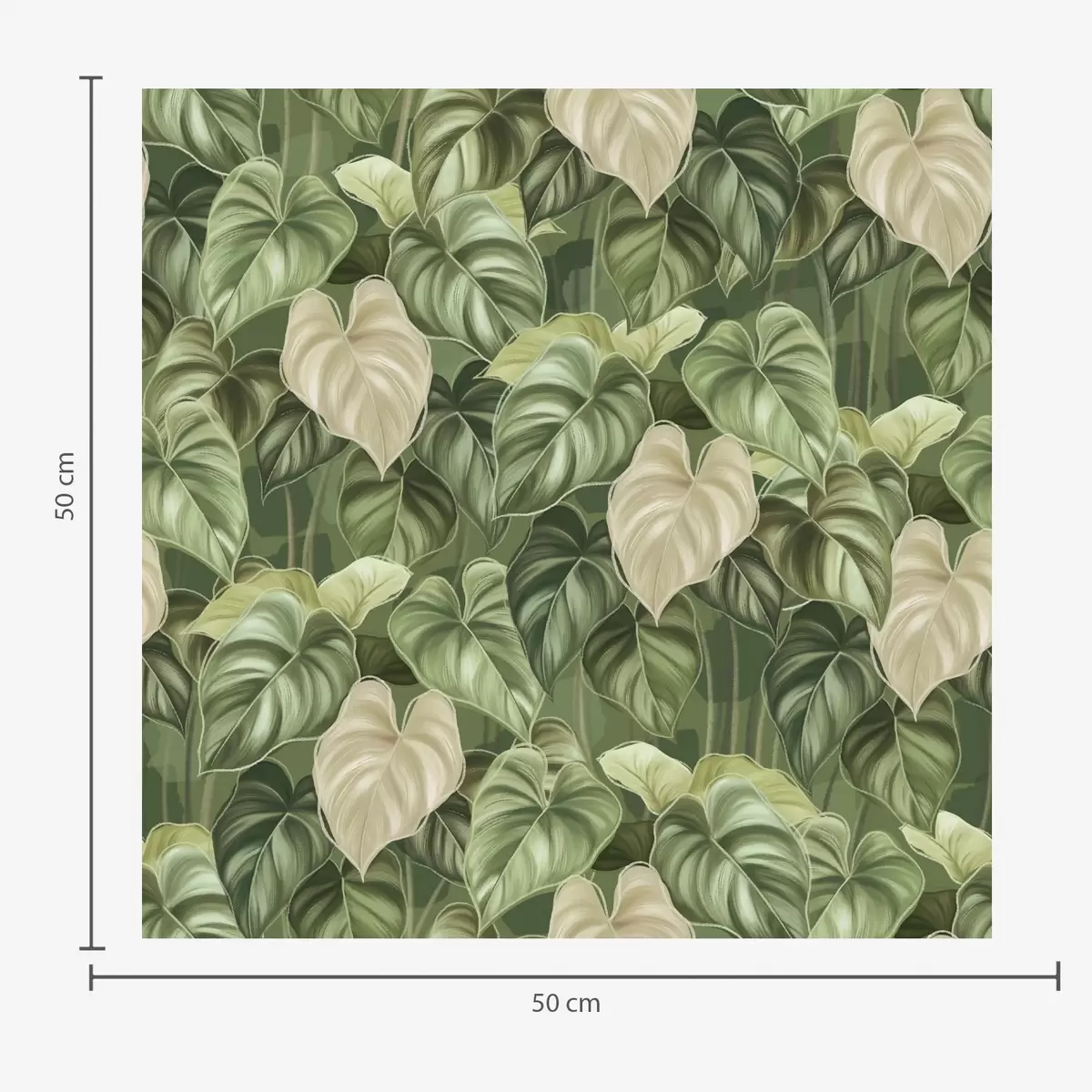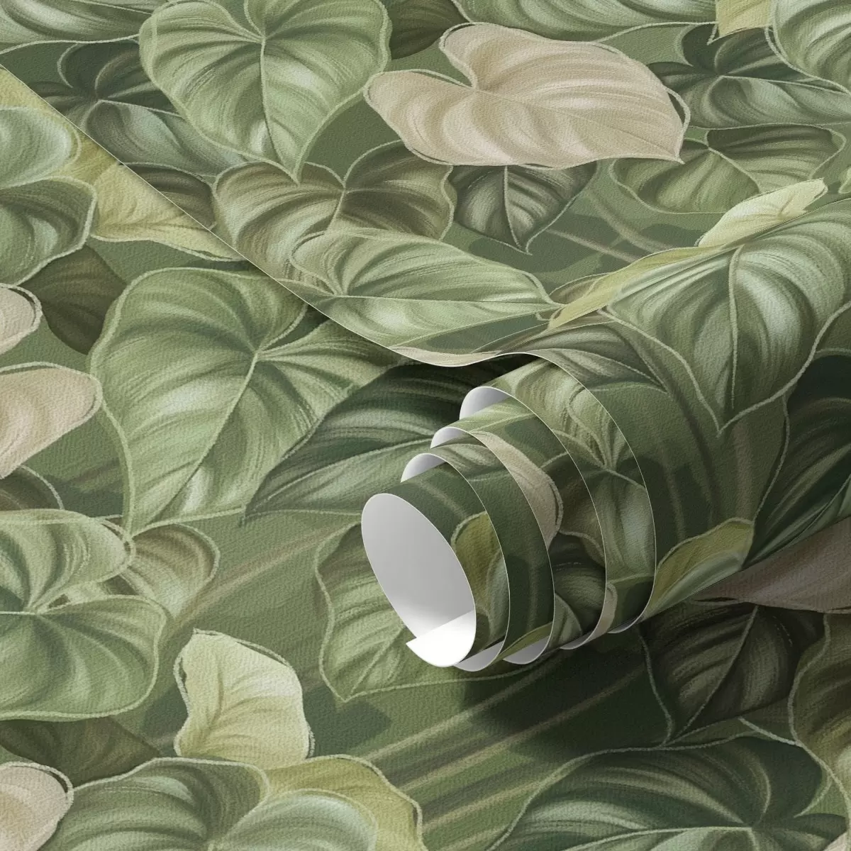 Wallpapers Lush philodendron leaves in shades of green and ivory Nr. a00695
