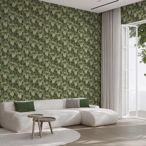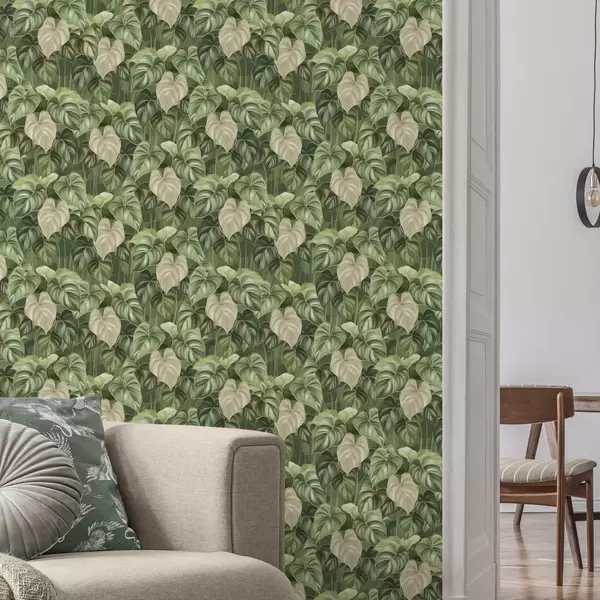 Wallpapers Lush philodendron leaves in shades of green and ivory Nr. a00695