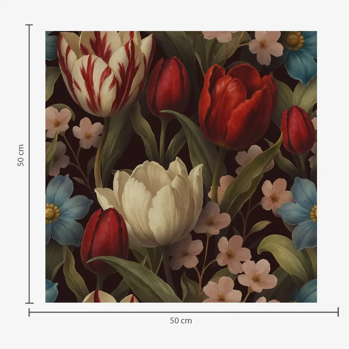 Wallpapers Bright tulips and blue flowers on dark background Nr. a00746