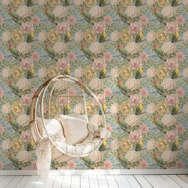 Wallpapers Parrots among peonies, hydrangeas, and magnolias Nr. a00747