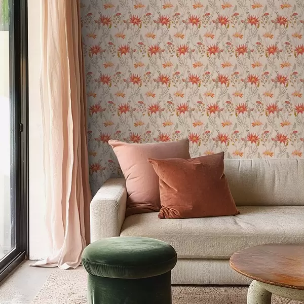 Wallpapers Wildflowers in warm tones on beige background Nr. a00751