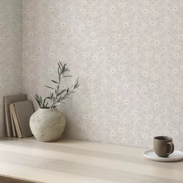 Wallpapers Tiny daisies on twigs, warm beige Nr. a00777