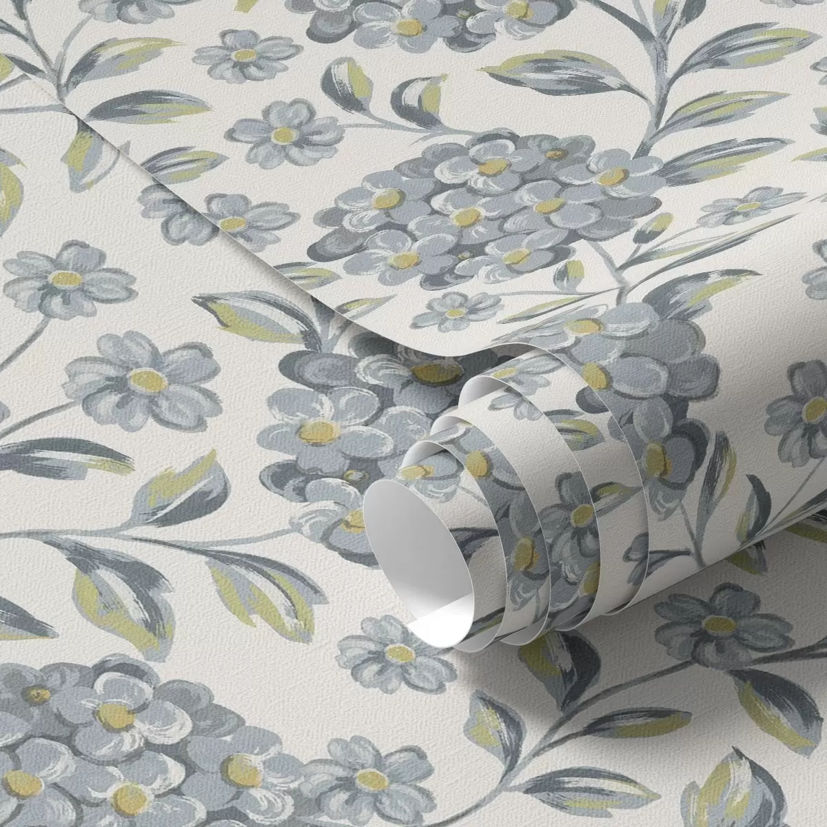 Wallpapers Brushy blossoms and leaves in a gray-blue palette Nr. a00778