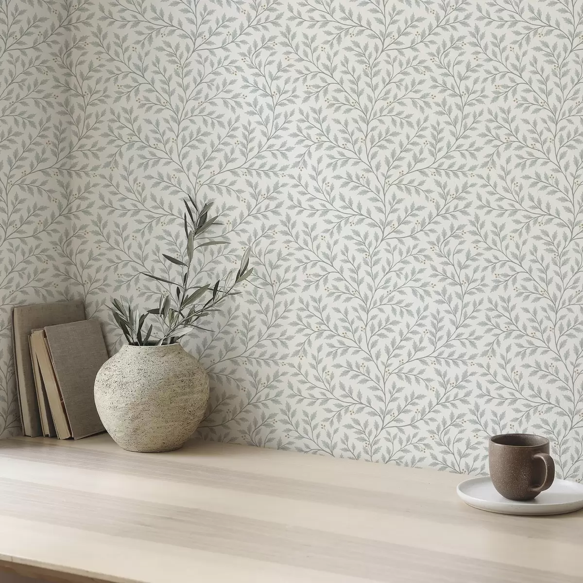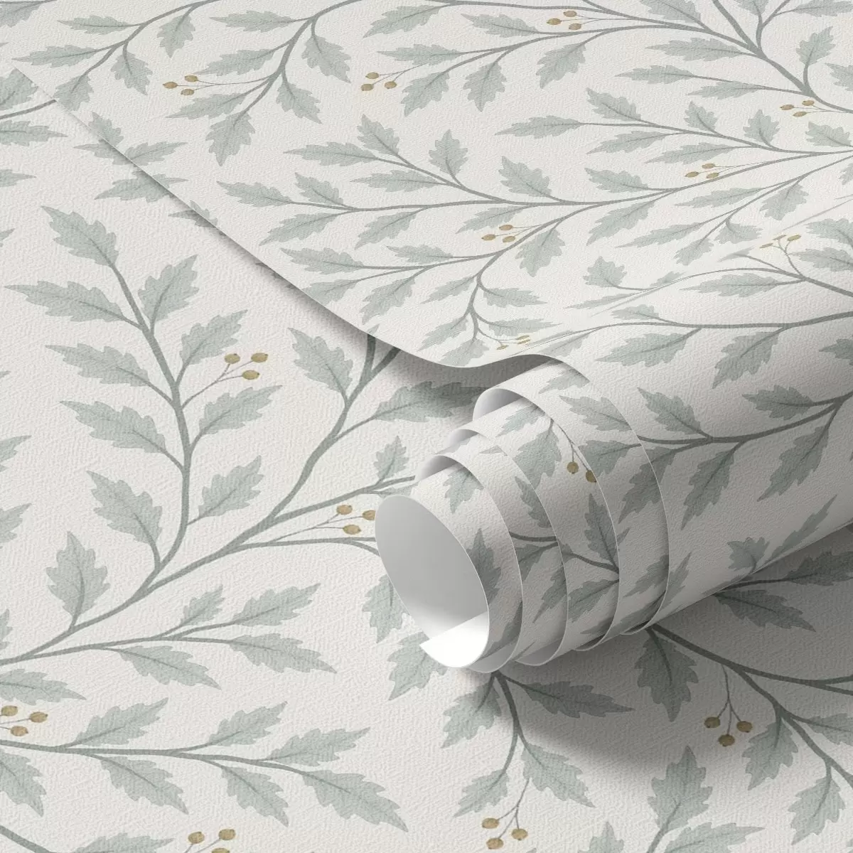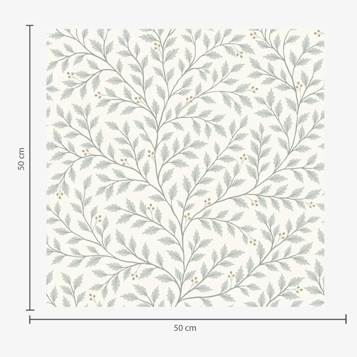 Wallpapers Branches with leaves and berries, light cream and sage Nr. a00783
