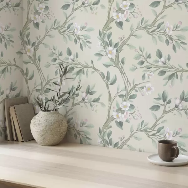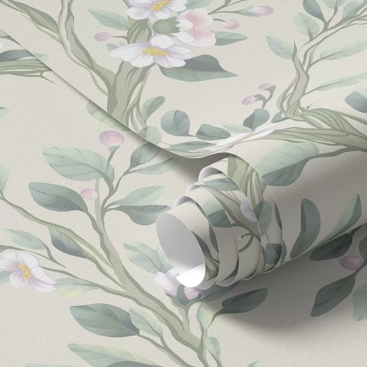 Wallpapers Delicate blooming branches on a cream background, pastel Nr. a00793