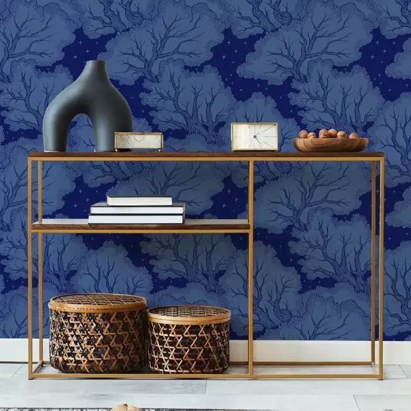 Wallpapers Silhouettes of trees under a starry sky in shades of blue Nr. a00798