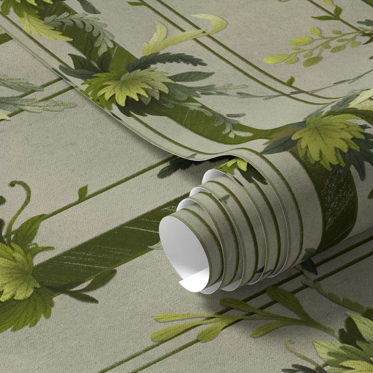 Wallpapers Green leaves in vertical stripes on a gray background Nr. a00807v1