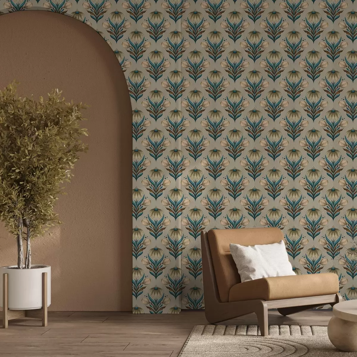 Wallpapers Symmetrical floral ornament in warm tones Nr. a00812