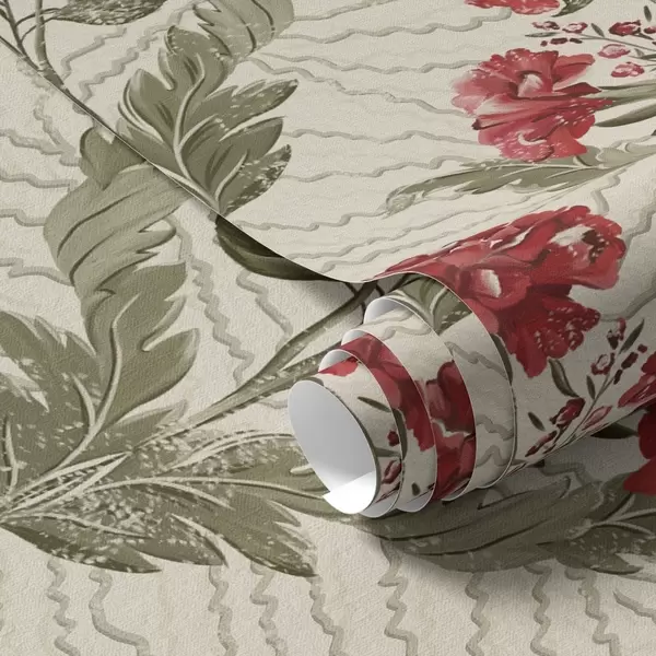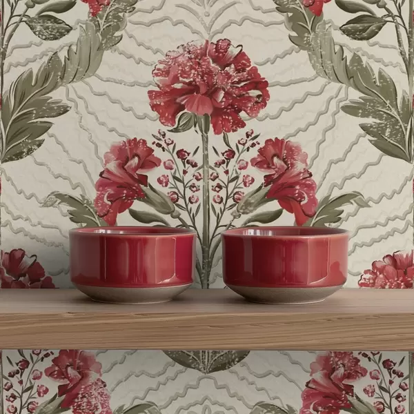 Wallpapers Large red peonies with graphic backdrop, cream ground Nr. a00857