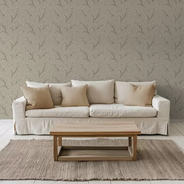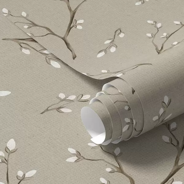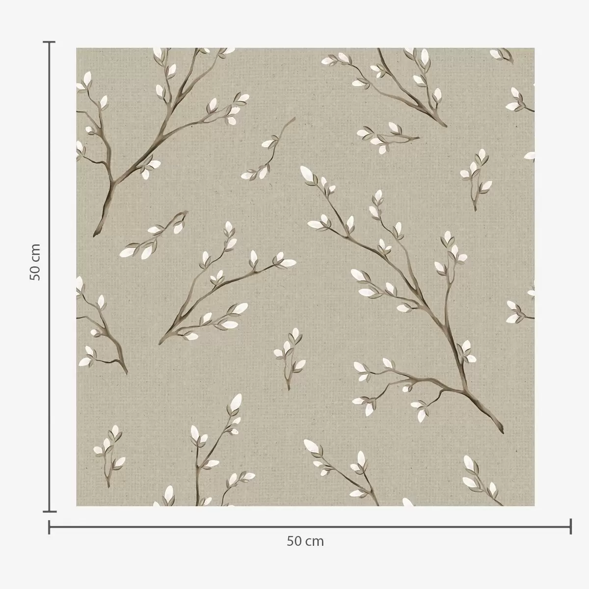 Wallpapers Twigs with white buds on linen taupe background Nr. a00861