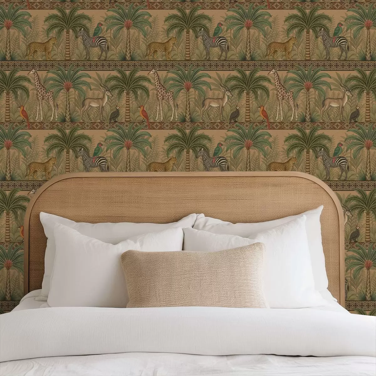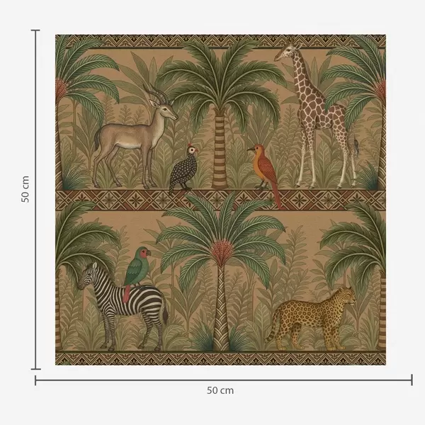 Wallpapers Decorative savanna animals between palms and borders Nr. a00898
