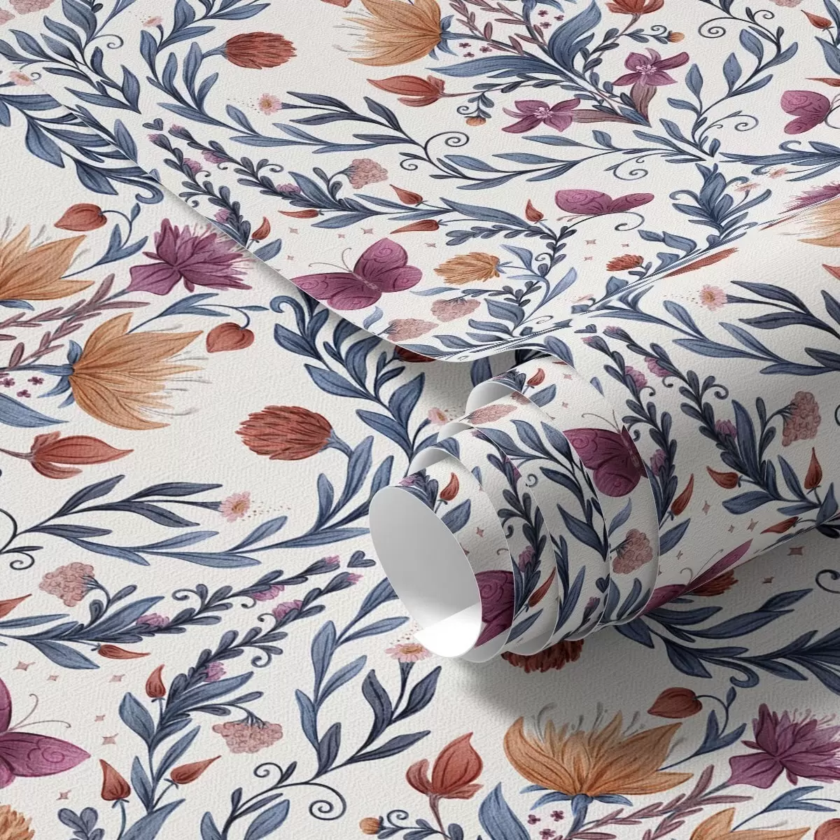 Wallpapers Floral damask with butterflies on warm cream Nr. a00926v2