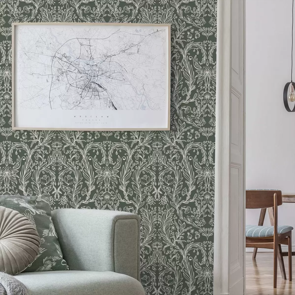 Wallpapers Linear floral pattern on a dark green background Nr. a00929